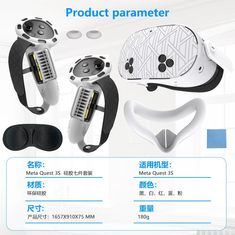 7Pcs/Set Silicone Cover for Meta Quest 3S Accessories Includes Cover Set Controller Grip Cover and Soft Shell Cover